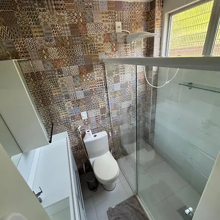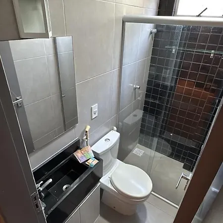 Apartamento Aconchegante Mobiliado Para Temporada provides guests with a seating area and a kitchen, as well as such modern comforts as air conditioning. For added convenience, a separate toilet and a shower are available at the accommodation. Furthermore, you can enjoy hair dryers and towels provided in the bathroom.